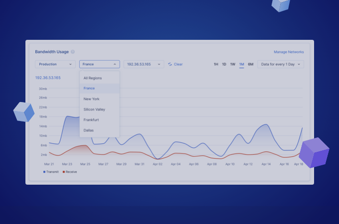 Filter gateway user data by network, region, and gateway to see bandwidth usage over time.
